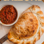 - Cut the calzone in half.